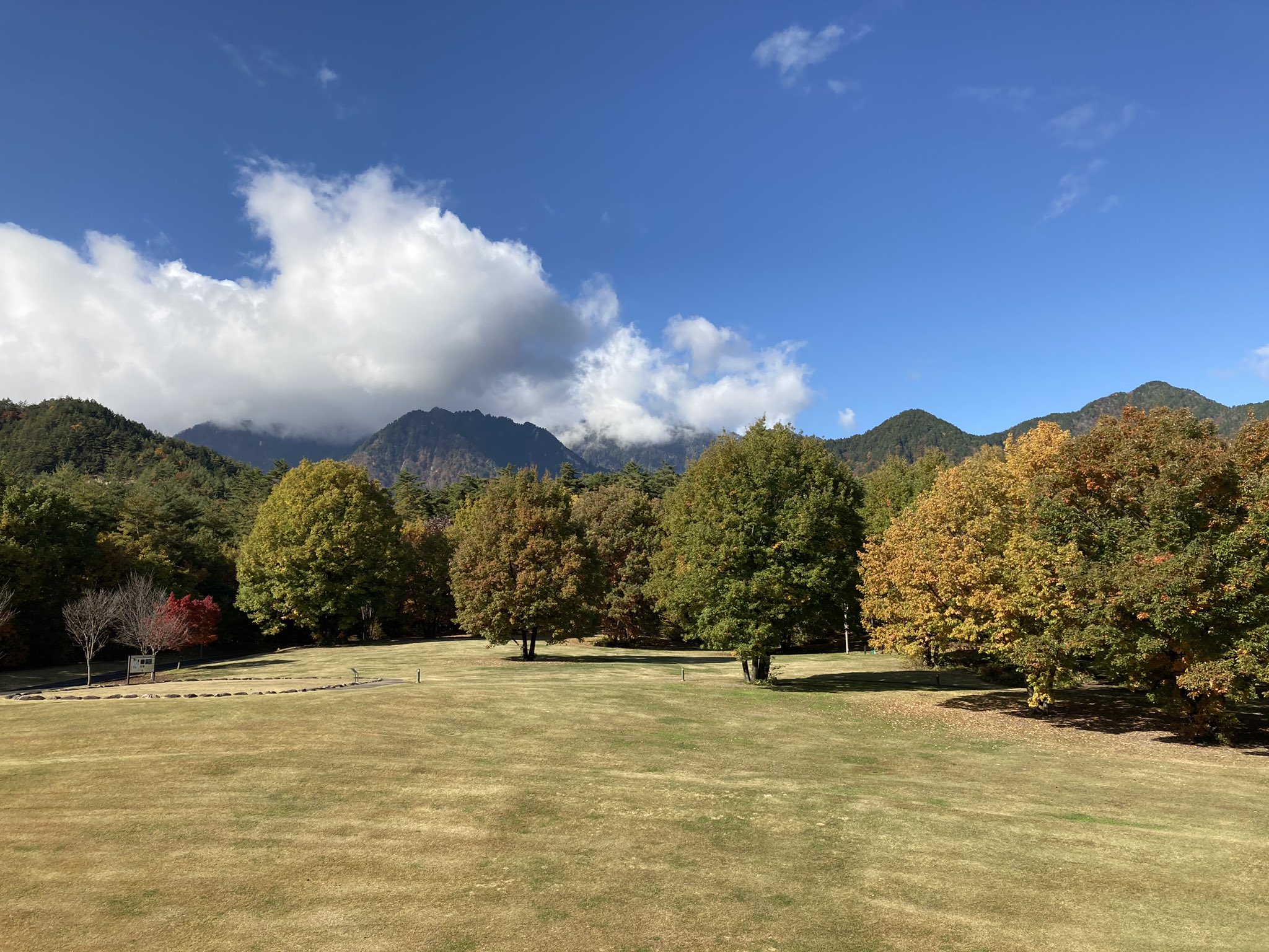 国営アルプスあづみの公園 大町 松川地区 On Twitter 青空が見えてきました デイキャンプ場や入口広場周辺の紅葉は見頃を迎えています アルプスあづみの公園大町 松川地区 紅葉 お散歩 信州