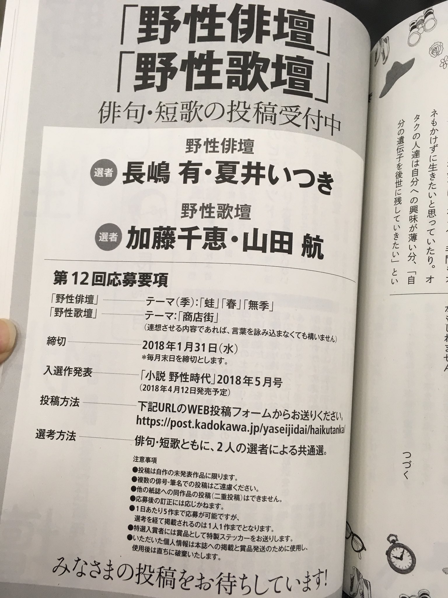 小説 野性時代編集部 On Twitter 野性俳壇 野性歌壇 本日締切です みなさんのご応募お待ちしています 短歌 俳句 加藤千恵 山田航 長嶋有 夏井いつき Https T Co Lwuko7pvhu